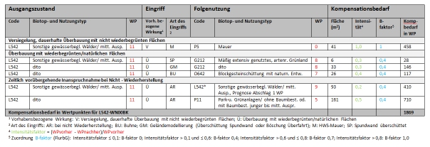 Tabelle: Berechnung des Kompensationsbedarfs nach BayKompV, (FlurbG).